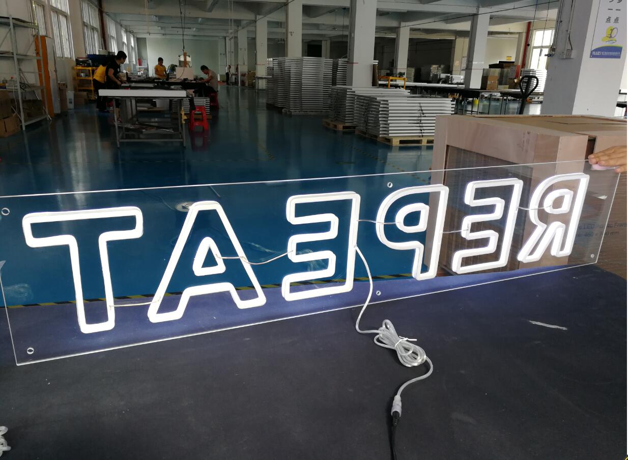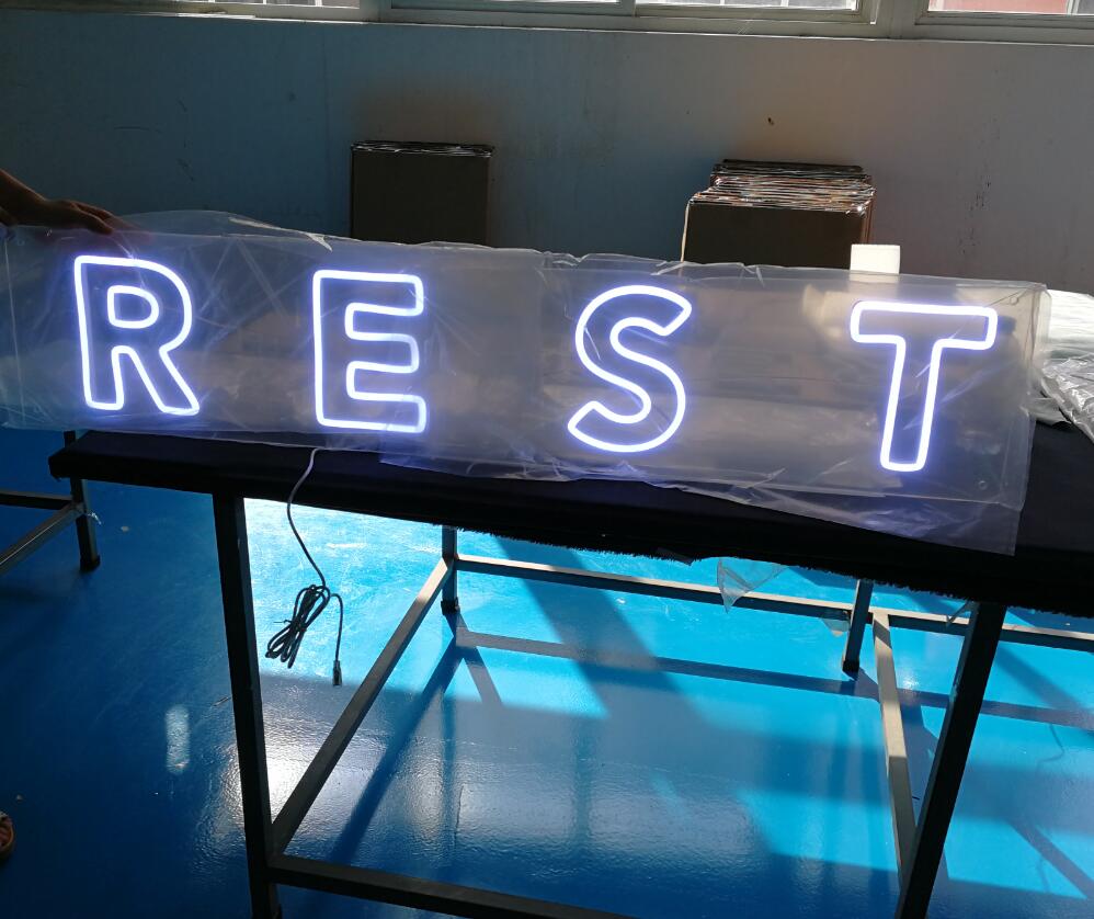 Letters: White acrylic 200mm thick Back board: Clear acrylic 5mm thick Light: LED